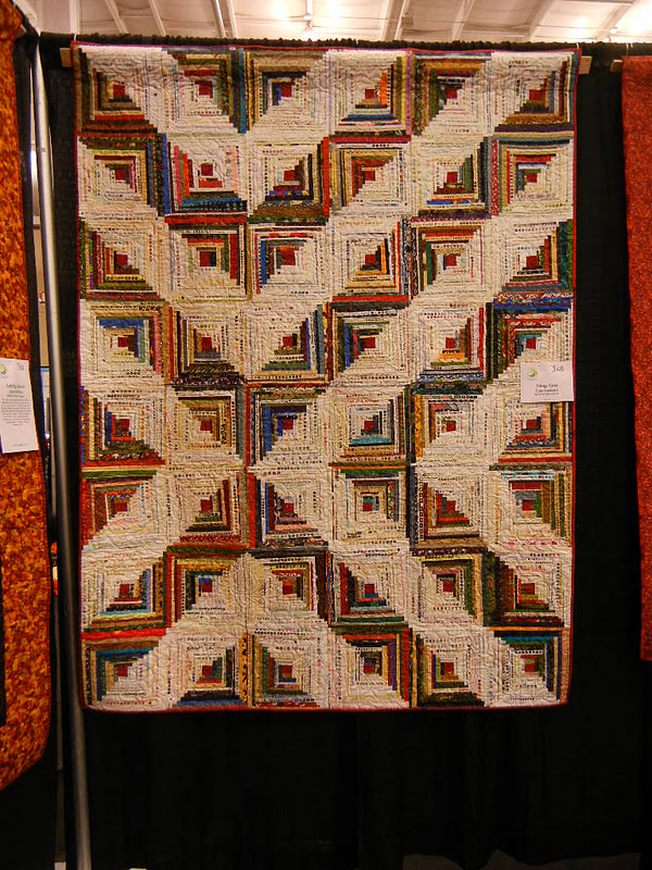 This batik beauty is gorgeous. I think the word 'monster' has to do with her process of putting it all together. It's a BIG quilt. I never did find her other entry which was floral with gold on it! (She showed me after the show). Lovely! : )